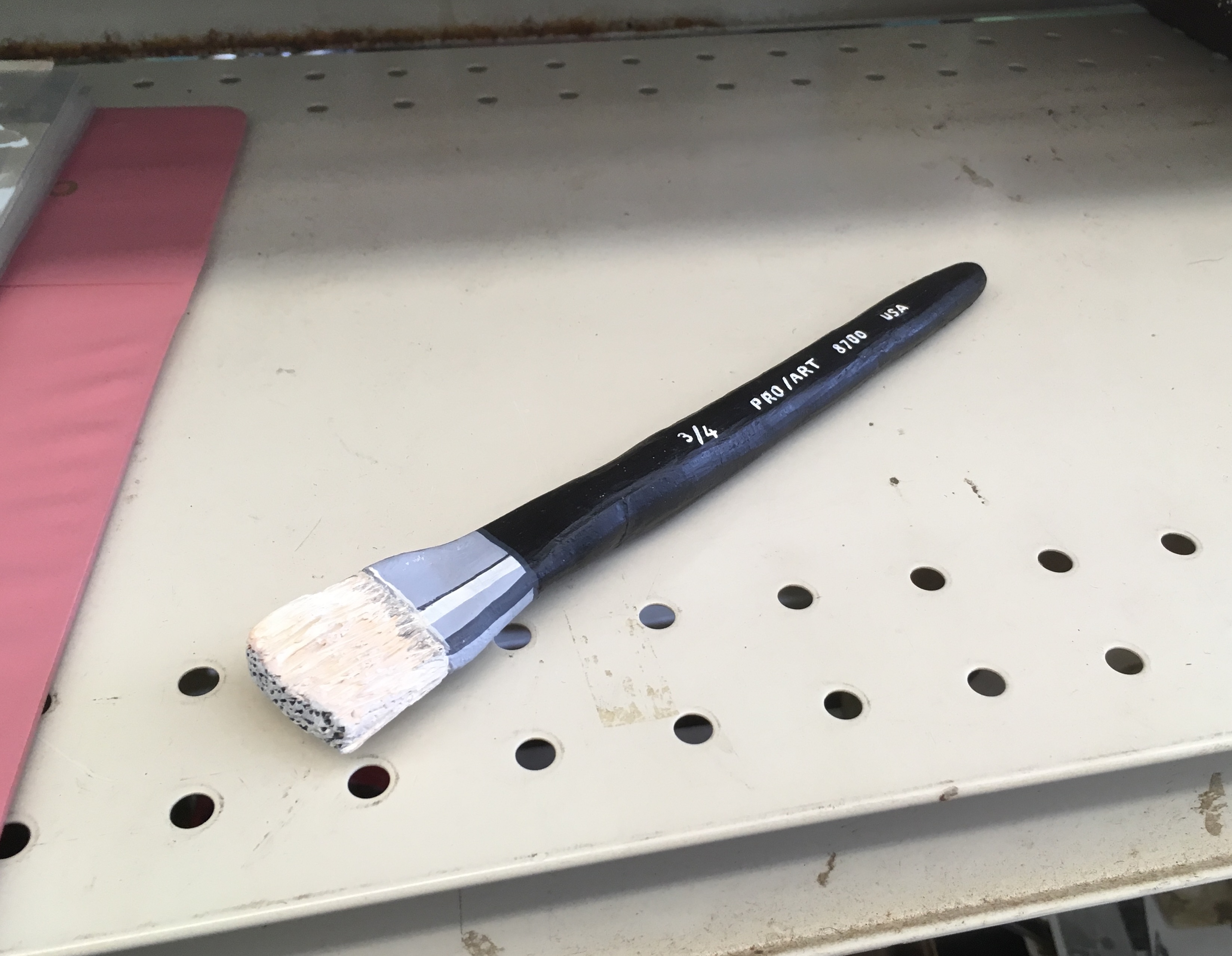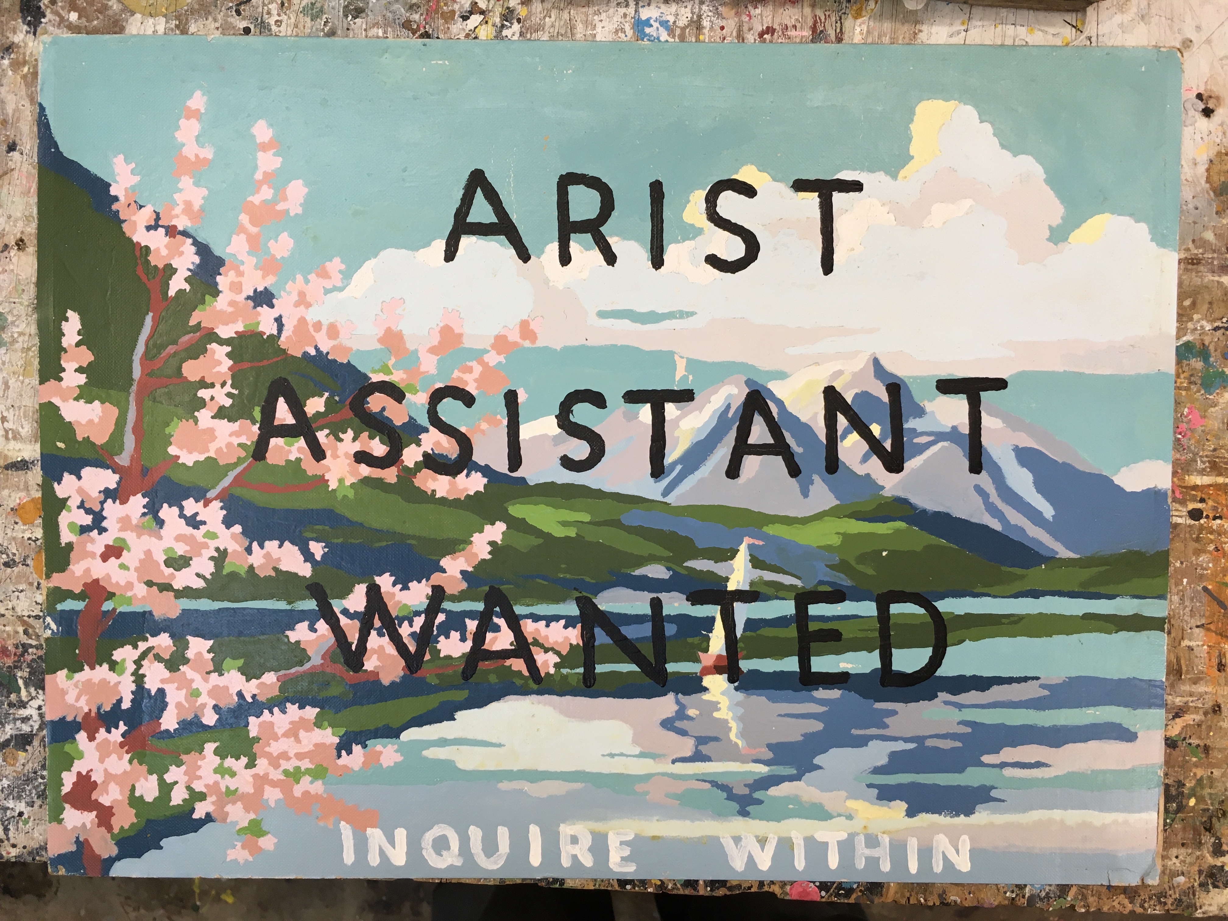 Artist Assistant Sign, December 7, 2019. Lettered over an old paint-by-number.