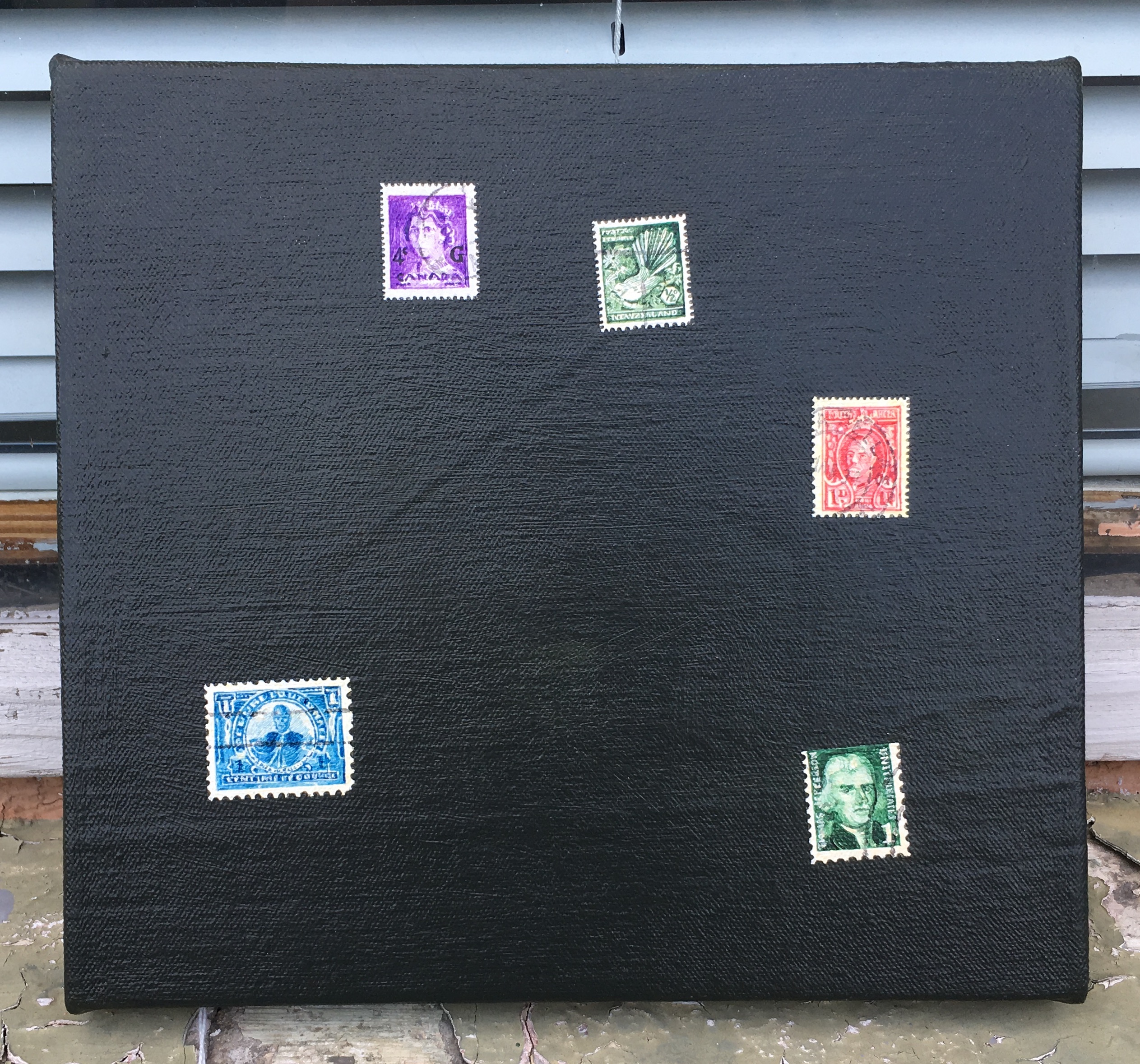 Stamps of the British Empire, August 10, 2019. Acrylic on canvas, life-sized.
