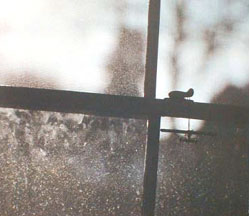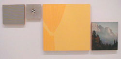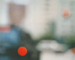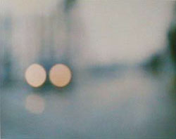 Places Uta Barth: 1991 - 94 Uta Barth's simultaneous shows at the CAM and Lawing Gallery present a comprehensive retrospective of her work for the past ten years. The two shows are complementary; the five painting/photo pieces from 1991-94 at Lawing exactly fill the gap in the CAM's Between Places. Barth's pre-1995 work, like Untitled #16 at Lawing tries desperately to combine photography and painting via multipart collages of photos and painted panels. Both the surface of the paintings and the subjects of the photographs are subdued in an attempt to merge them which never quite comes off, but which ultimately forms the base of her later photo work. Barth's best (and best known) work begins immediately after she threw out the paintings and concentrated on the blurred photos she is mostly known for. In the Ground series, beginning in 1994, modest scale panels show fuzzy slices of bare interiors: a curtain, bookshelves, a lamp. The Field series takes us outdoors; Field #3 is one of her best: some indistinct blurs are recognizably a car, streetlights and trees, but others remain a mystery, hovering exactly at the edge of recognition. The piece flip-flops from atmospheric, moody abstraction to street scene and back, endlessly. Much of the talk about Barth's work centers on its relation to painting, but who cares? Abstract photos are nothing new; Edward Weston and Man Ray were doing it in the early 20th century. What's important about Barth's images is their sense of isolation and melancholia. In the Ground series, the blurring stands as a physical screen between the viewer and the subject of the photo. Some of the Nowhere Near images take this a bit too literally, with actual windowpanes (some with raindrops!) dividing the space between the camera and an outside world where it's always a rainy day, generating a sense of longing appropriate for a novel by one of the Bront‘ sisters. Barth's photos are a view of earth after the neutron bomb or the rapture: everything intact, but no people, just places where people used to be, as in the airless water tower photos of Bernd and Hilla Becher, or the anonymous industrial interiors of Andreas Gursky. By removing specific locations and characters, Barth's works present a universalized space on which we can project our own loneliness. Barth's genius is in using self-conscious, formal composition as an antidote for sentimentality. This is best illustrated in the rare cases where it fails: in Untitled, from Nowhere Near (nw 8), a tiny biplane hangs in a window as if flying into the immense stormy sky outside, charging the piece with drama which even a grid of abstract, almost constructivist black bars can't restrain. The tiny dark plane is hidden on purpose; at the moment of recognition, its presence changes the piece from a geometric exercise to Amelia Earhart's last flight. Usually Barth is right on; In Untitled (98.1) a quaint white cottage is de-kitched without losing its nostalgia through blurring and repetition. In her most recent series, the . . .and in time pictures, Barth warms up, replacing the cool palette of her earlier works with a bland, pleasant, yellow and gray interior. Here time, not space, is abstracted, as rectangles of yellow sunlight slide across carpet and walls. The comparatively traditional alienation of the Ground and Field photographs is replaced by a subtle, pleasant, middle-aged tedium. Photographing nothing is popular with contemporary artists: the CAM itself has shown Hiroshi Sugimoto's Zen seascapes and Andres Serrano's milk and blood monochromes. Partly these artists are continuing the attempt to free photography from its overriding preoccupation with imagery and narrative. Partly they are taking advantage of the relatively recent art world acceptance of photos with the scale and impact of paintings. - Bill Davenport